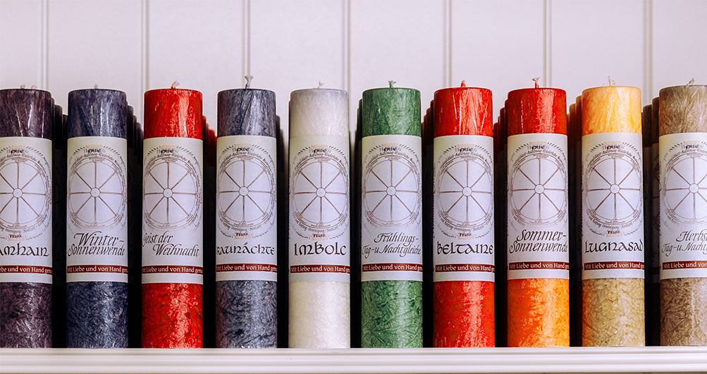 Jahresrad: die wichtigen Stationen der Jahreszeiten und des Sonnenverlaufs waren für unsere Ahnen Anlass zu Ritualen und Festen, deren Kreislauf den eigenen Lebensweg zu spiegeln schienen. Die Kraft dieser Wandelzeiten zeigt sich in den 10 Kerzen dieser Serie.