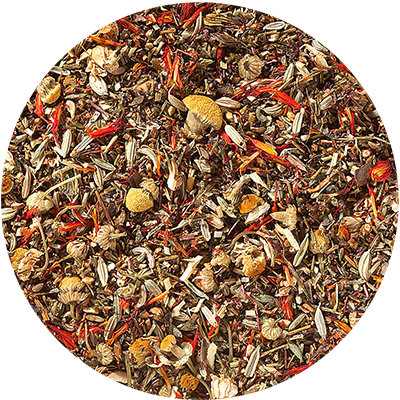 Zutaten:  grüner Honeybusch*, grüner Rotbusch*, Fenchel*, Anis*, Kamille*, Färberdisteln, *k.b.A. - aus kontrolliert biologischem Anbau