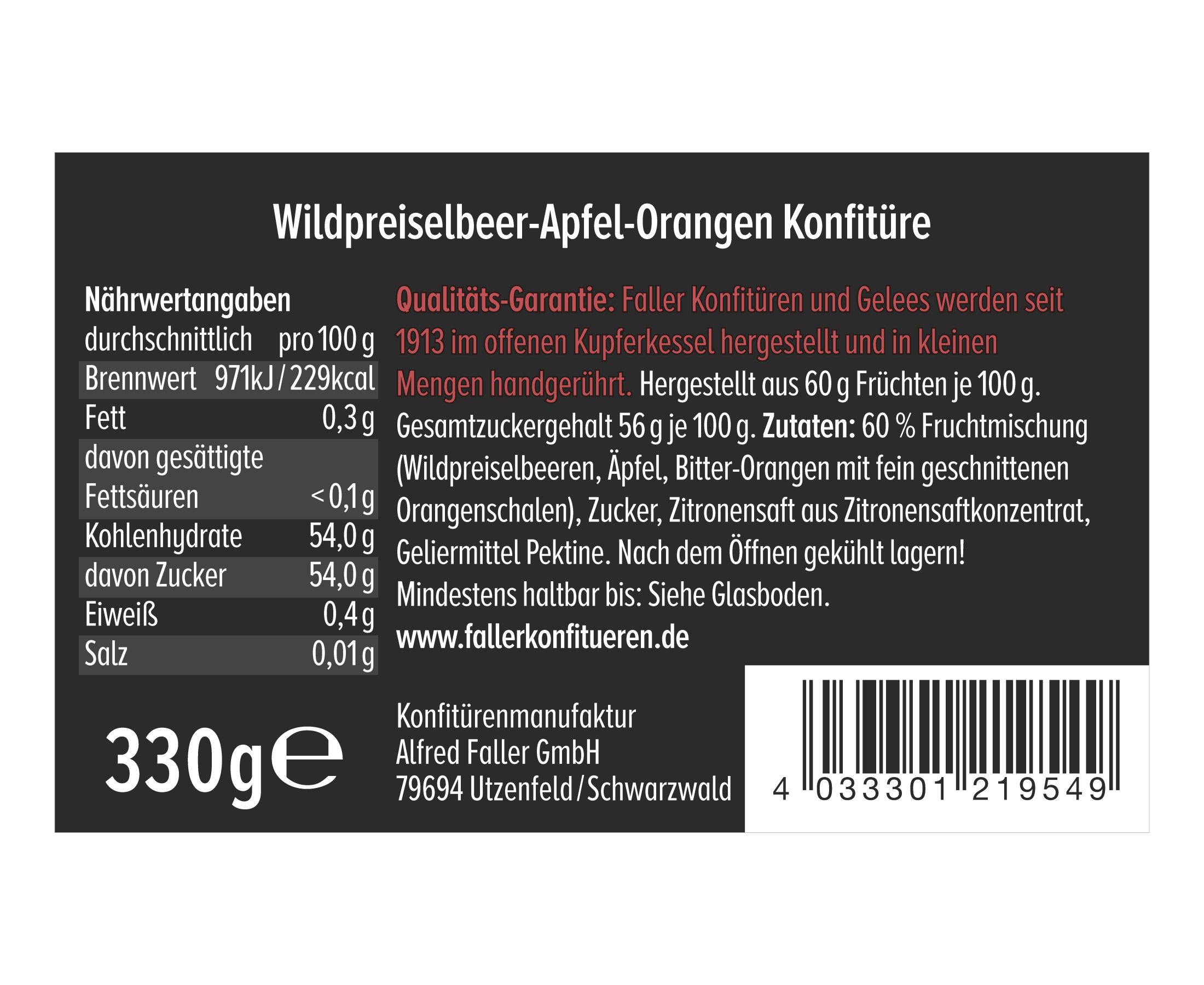 Produktinformationen "Wildpreiselbeer-Apfel-Orangen-Konfitüre"